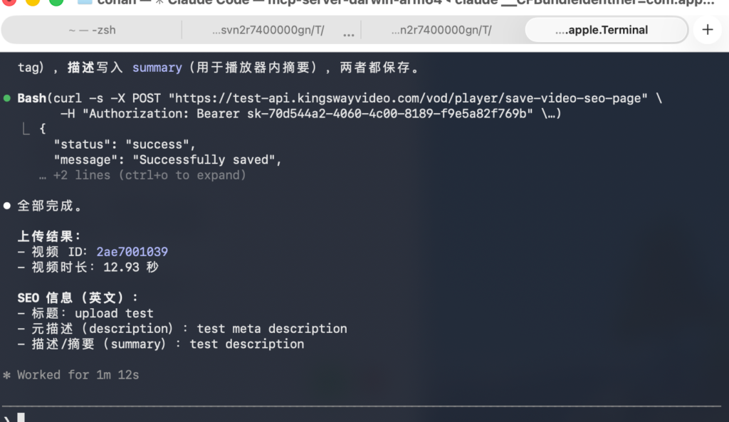 - 可自然语言沟通,告知智能体,要上传本地哪个目录下的哪些视频