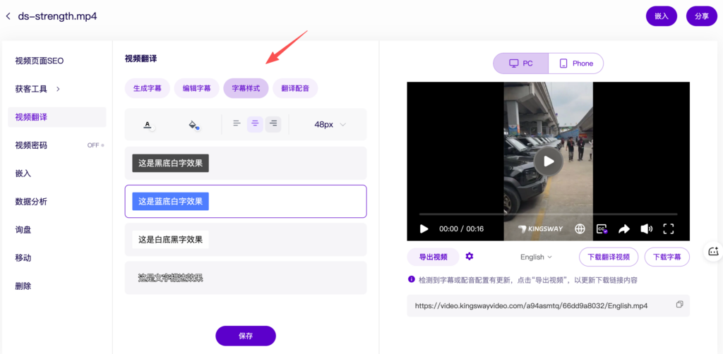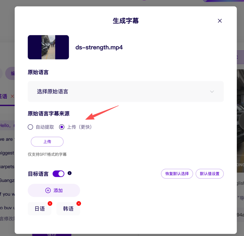 - 生成字幕支持上传方式,即,已经有字幕的视频,可同步上传视频和字幕,在Kingsway 导出新的翻译后的视频