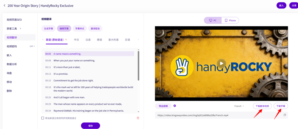 例如,如果你需要为俄罗斯客户发送视频链接,可以选择俄罗斯语言的视频链接,客户打开后将直接看到俄语版本的视频。