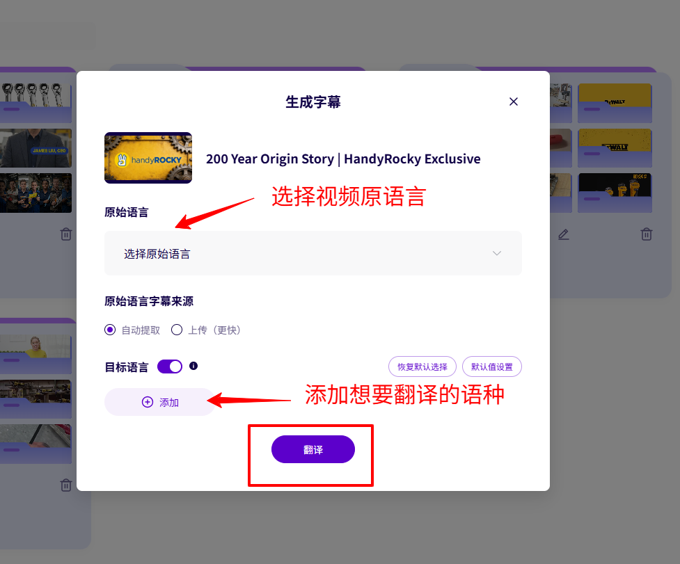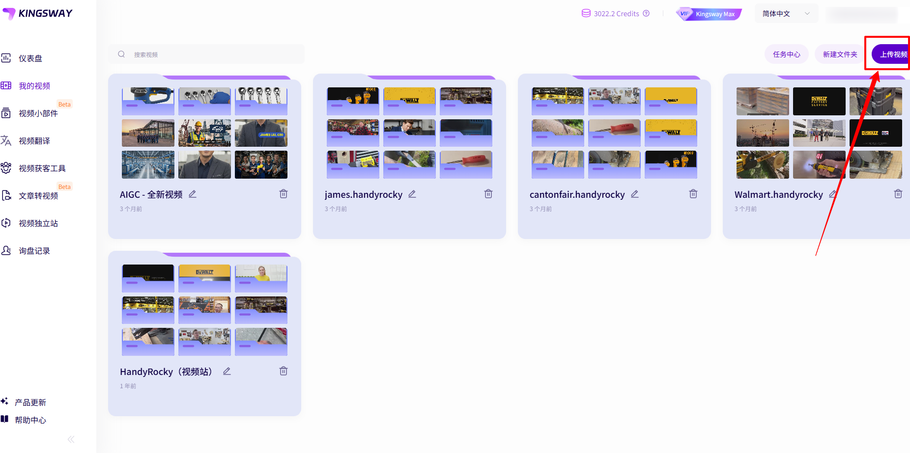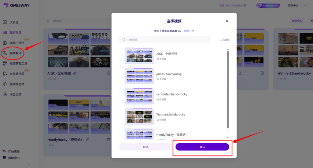 上传视频,选择视频翻译,找到您想要翻译的视频