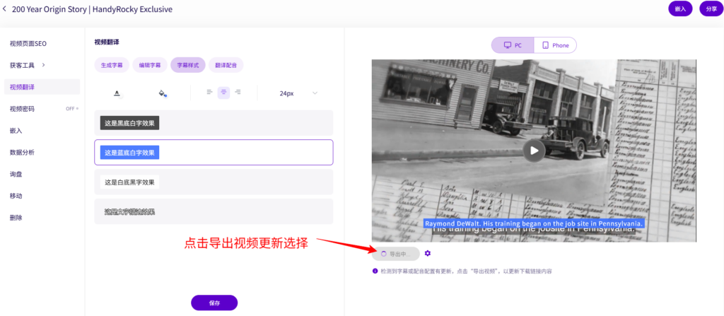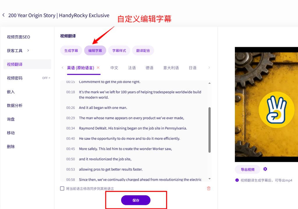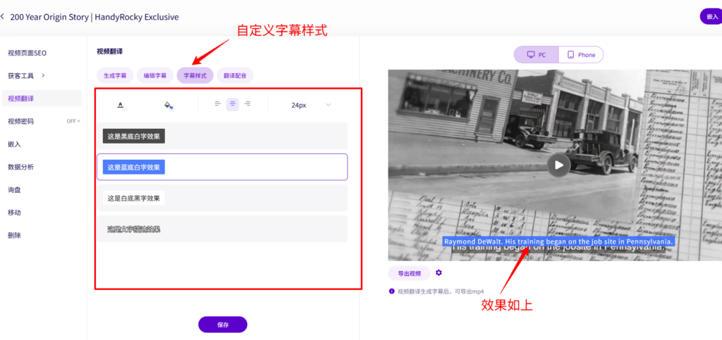 进入翻译界面,您还可以自定义编辑字幕,自定义字幕样式: