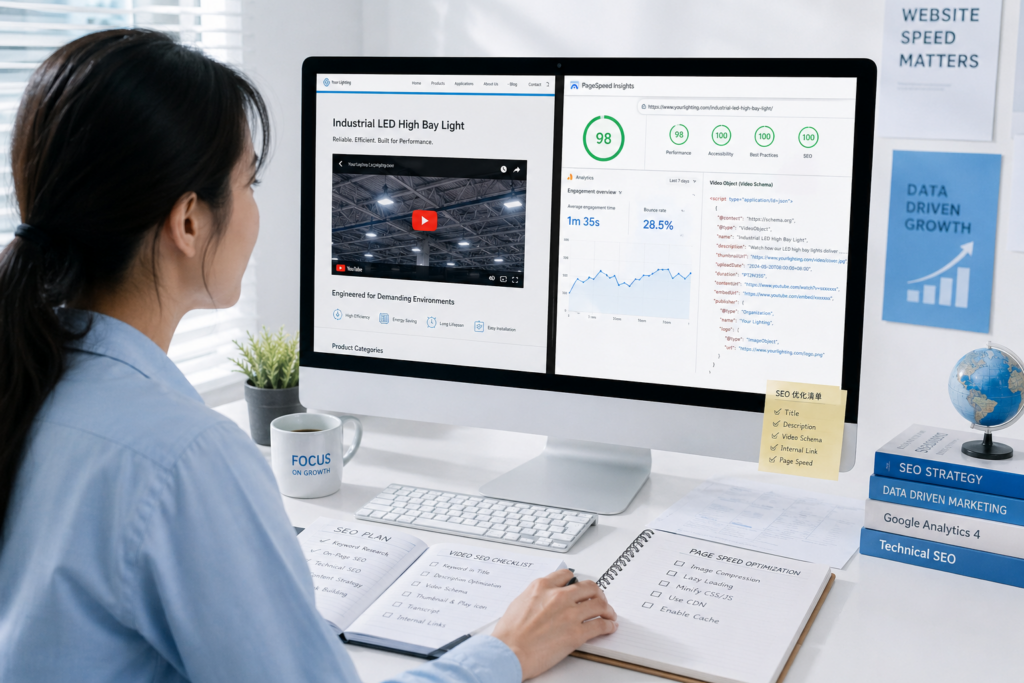 A: 视频不是直接排名因素,但通过停留时长和点击率间接影响排名。Wyzowl 数据显示 82% 的营销人员表示视频帮助访客停留更久,Google 数据显示 Video Schema 提升点击率。
